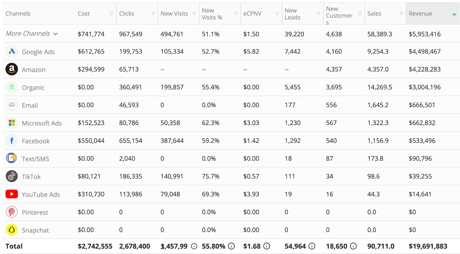 We used the Tier 11 Data Suite™ to identify which channels were actually creating new demand versus those just "recycling" existing customers. We immediately found that a significant cut in spending on Amazon and Google Brand ads yielded virtually no negative impact on overall sales, indicating the conversions were non-incremental. Utilizing multi-channel click-based data (not modeled like other attribution systems) to guide our decisions inside the Tier Tier 11 Data Suite™ made this all possible:
